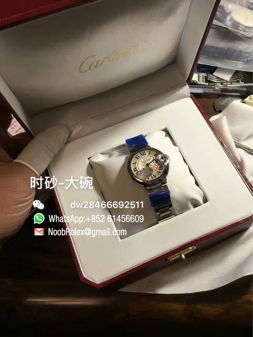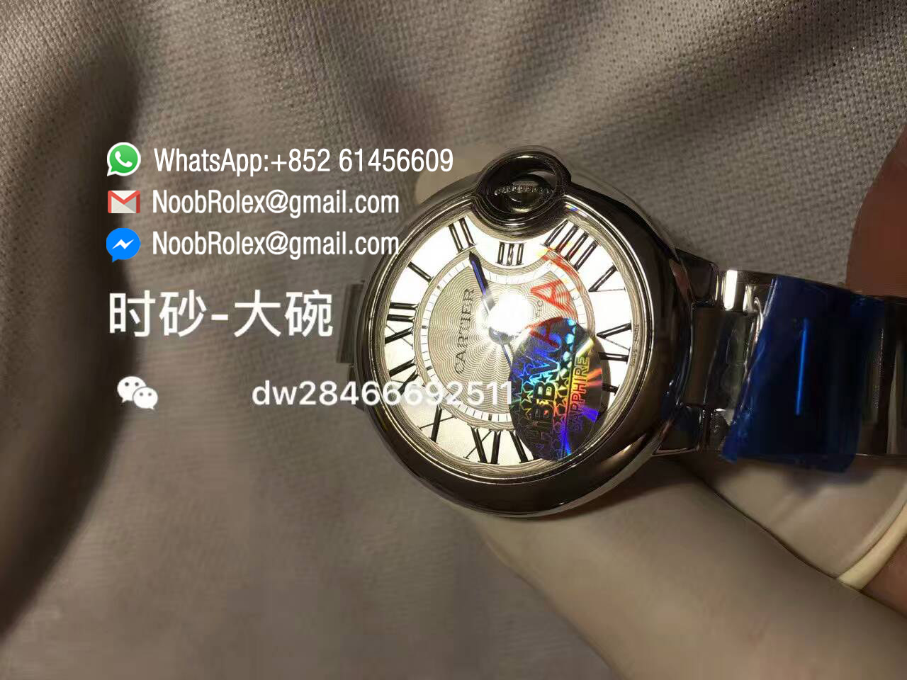 Order Now V6F Ballon Bleu de watch, 33 mm, mechanical movement with automatic winding. Steel case, fluted crown decorated with a synthetic spinel cabochon, silvered guilloché opaline dial, Roman numerals, blued-steel sword-shaped hands, sapphire crystal, steel bracelet. Case dimensions: diameter: 33 mm. Water-resistant to 3 bar (approx. 30 meters/100 feet).